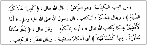 في الدارج تكون “كتب” أقرب لمفهوم “خط-يخط-مخطوطة”، ويبدأ التحدي في تفسير المفهوم عندما نحلله ضمن نص مهم كالقرآن، فذهب بعض المفسرين الى تقريبها أو مقارنتها بكلمة فرض، وآخرون الى تفسيرات تعتمد على الإحصاءات، ولربما كان هذا اجتهادا، ولكنه بالتأكيد بلا دليل علمي دامغ، و تعرض هذه المقولات الممزوجة بادعاءات الغوص في اللسان العربي على أنها كشف خاص، وللأسف تلقى ترحيبا في عقول المتعطشين للمعرفة السريعة